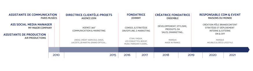 Pilotage de tous les projets Online & Offline, communication 360° tous supports : conception, création, production, fabrication... pour le compte d'Undiz (groupe Etam), Oasis, Crédit Agricole, JB Martin, Lacoste, Grand Optical...